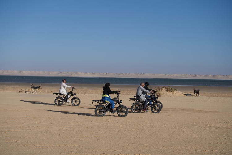 Discover E-Bike riding in Dakhla, an eco-friendly and immersive way to explore the region’s breathtaking landscapes. Ride silently along the Atlantic coast, lagoon, and desert tracks, and enjoy wide open spaces without effort thanks to powerful electric bikes.