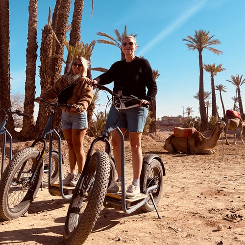 Discover Marrakech in a unique, fun, and eco-friendly way with our guided electric scooter ride, available in two distinct routes: the historic Medina or the scenic Palm Grove (Palmeraie). Each experience offers a different perspective of the city, adapted to your interests and travel style.