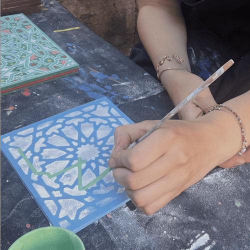 Discover Zwaq Art in Marrakech, a traditional Moroccan decorative painting technique known for its vibrant patterns and detailed designs. In this hands-on workshop, you will learn the basics of Moroccan painting with traditional tools and create your own beautifully decorated item such as the iconic Hand of Fatima, a traditional tea tray, or a charming mirror. This experience is perfect for travelers looking for a creative cultural activity in Marrakech and a unique handmade souvenir to take home.