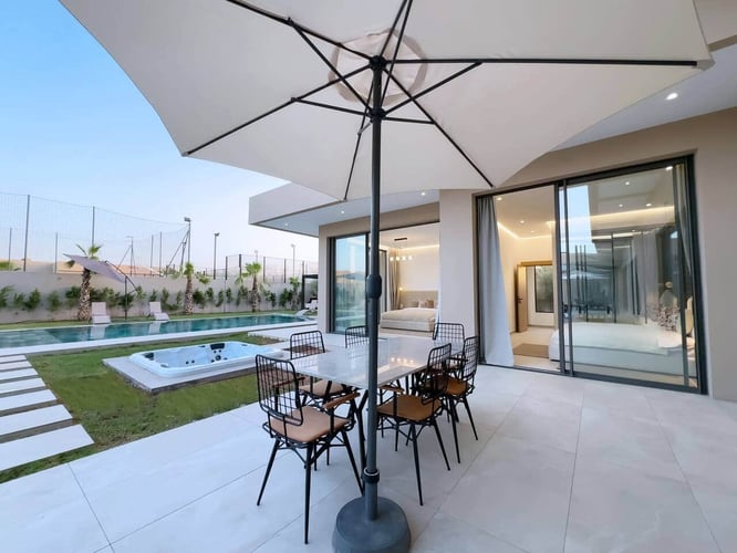 Villa Alia is fully private and reserved exclusively for guests, offering the perfect setting for a comfortable getaway with double pools and premium relaxation features.
