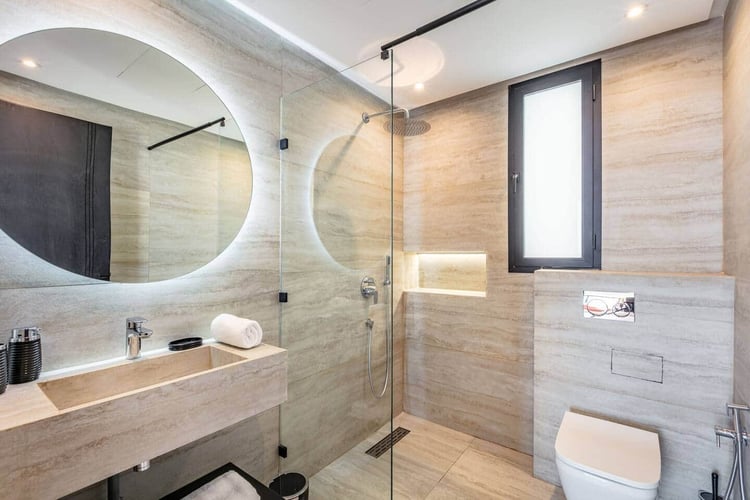 The villa includes 4 bedrooms and 4 bathrooms, making it ideal for groups and families. Inside, you’ll find a cozy living room to relax, plus a fully equipped kitchen with everything you need to prepare meals easily.