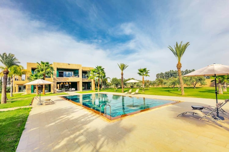 Villa Noura is an exceptional private villa set on a vast 11,000 m² estate with panoramic views of the Atlas Mountains, located on the Ourika road, approximately 25 minutes from the center of Marrakech. Designed to combine luxury, well-being, and entertainment, the villa accommodates up to 10 guests and is ideal for families or groups of friends seeking space, comfort, and serenity.