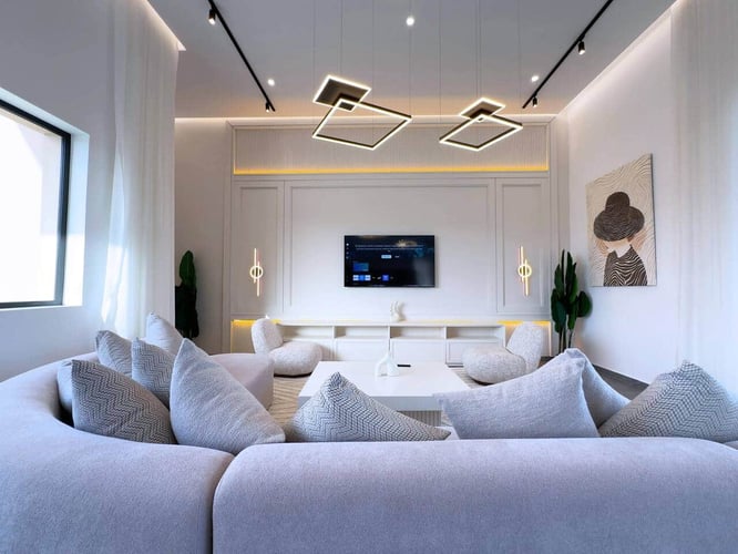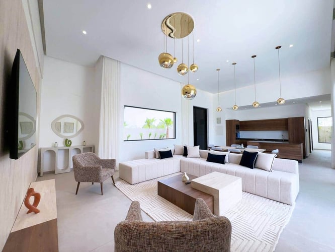 Inside, the villa offers 2 cozy living rooms, 6 bedrooms for up to 12 guests, and 2 fully equipped kitchens with indoor and outdoor dining areas—giving you full freedom and comfort during your stay.