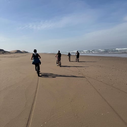 Partez à la découverte de l’un des plus beaux espaces naturels près d’Agadir avec cette excursion guidée en trottinette électrique tout-terrain ou en Fat Bike au cœur du Parc National de Souss Massa. Cette expérience immersive vous emmène à travers les dunes de sable, les forêts d’eucalyptus et les paysages d’arganiers, pour une aventure nature unique entre mer, désert et faune sauvage.